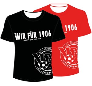 Das „Wir für 1906“-ShirtMit dem Erwerb unserer Helfer-T-Shirts „Wir für 1906“ zeigt Ihr, dass Euer Herz für den VfV 06 schlägt. Das T-Shirt dokumentiert Eure Solidarität in schwieriger Zeit. Es kostet 19,06 €. Angeboten wird es in schwarz und rot sowie in den Größen S, M, L, XL und XXL. |